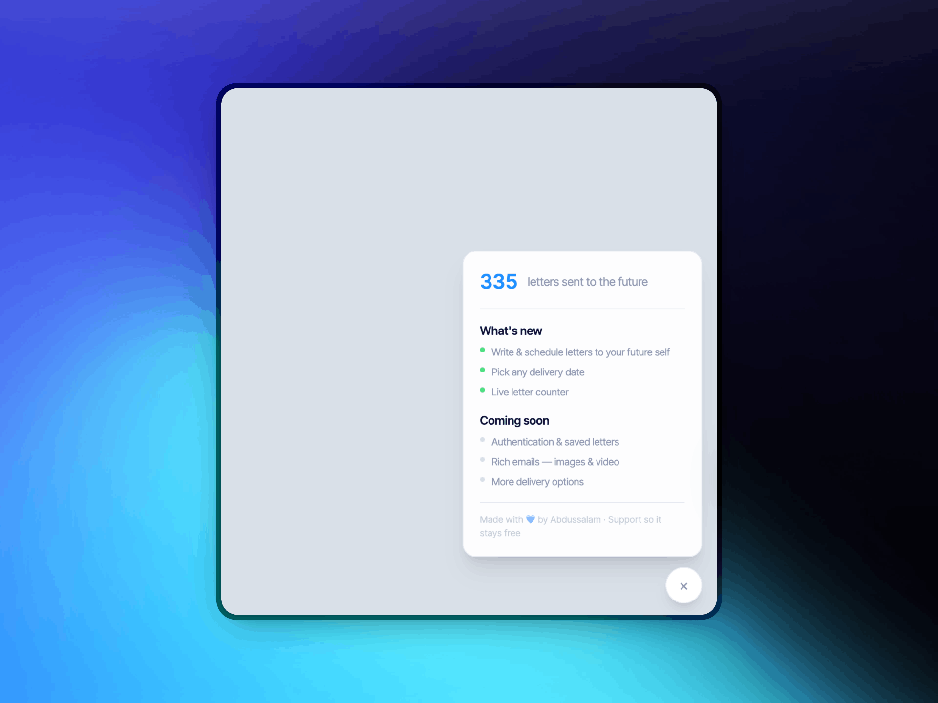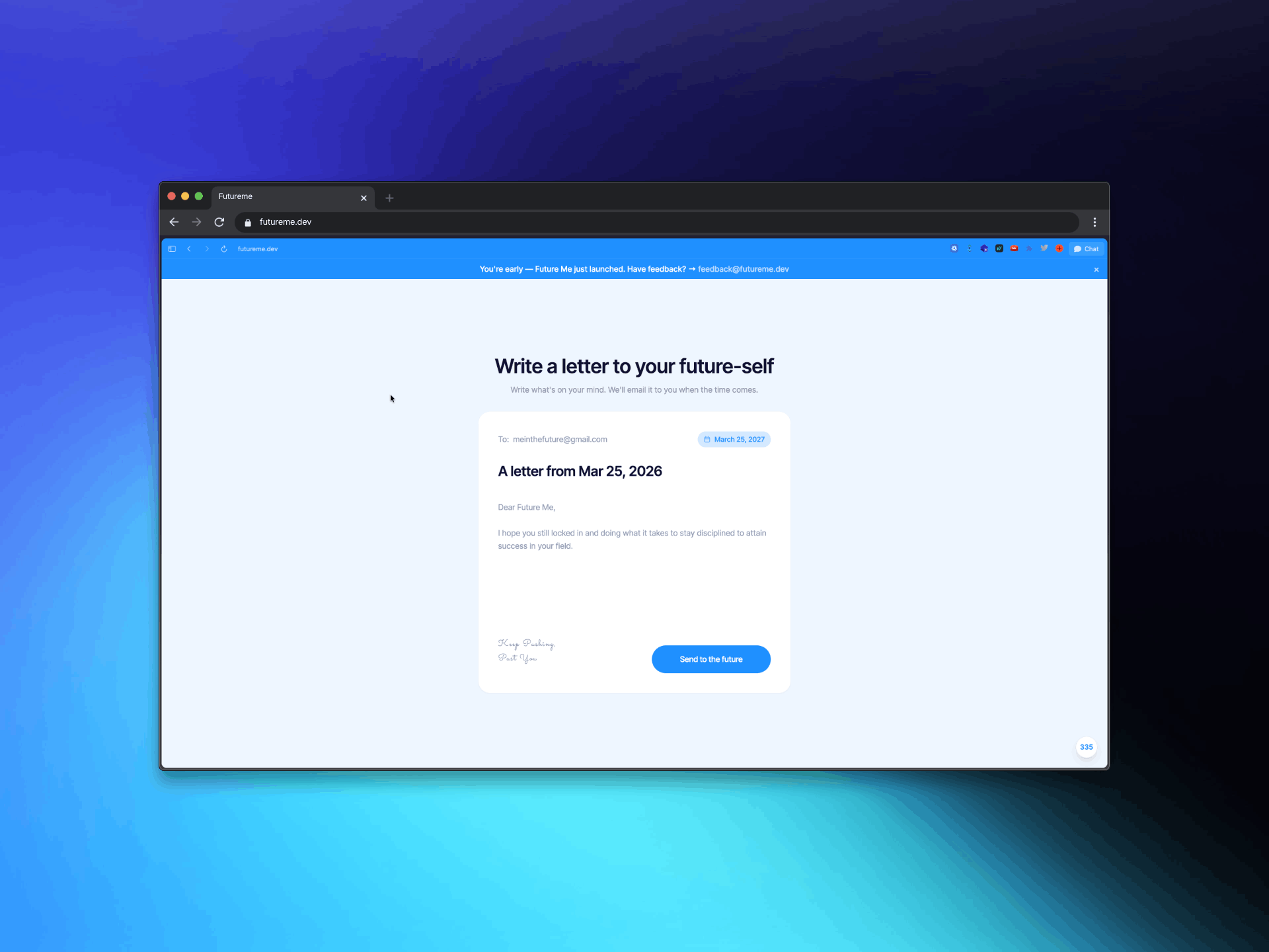FutureMe is a tool for writing letters to your future self. You pick a date and your message gets delivered to your inbox exactly when you chose. I built the first version the day after running my marathon in October 2025.