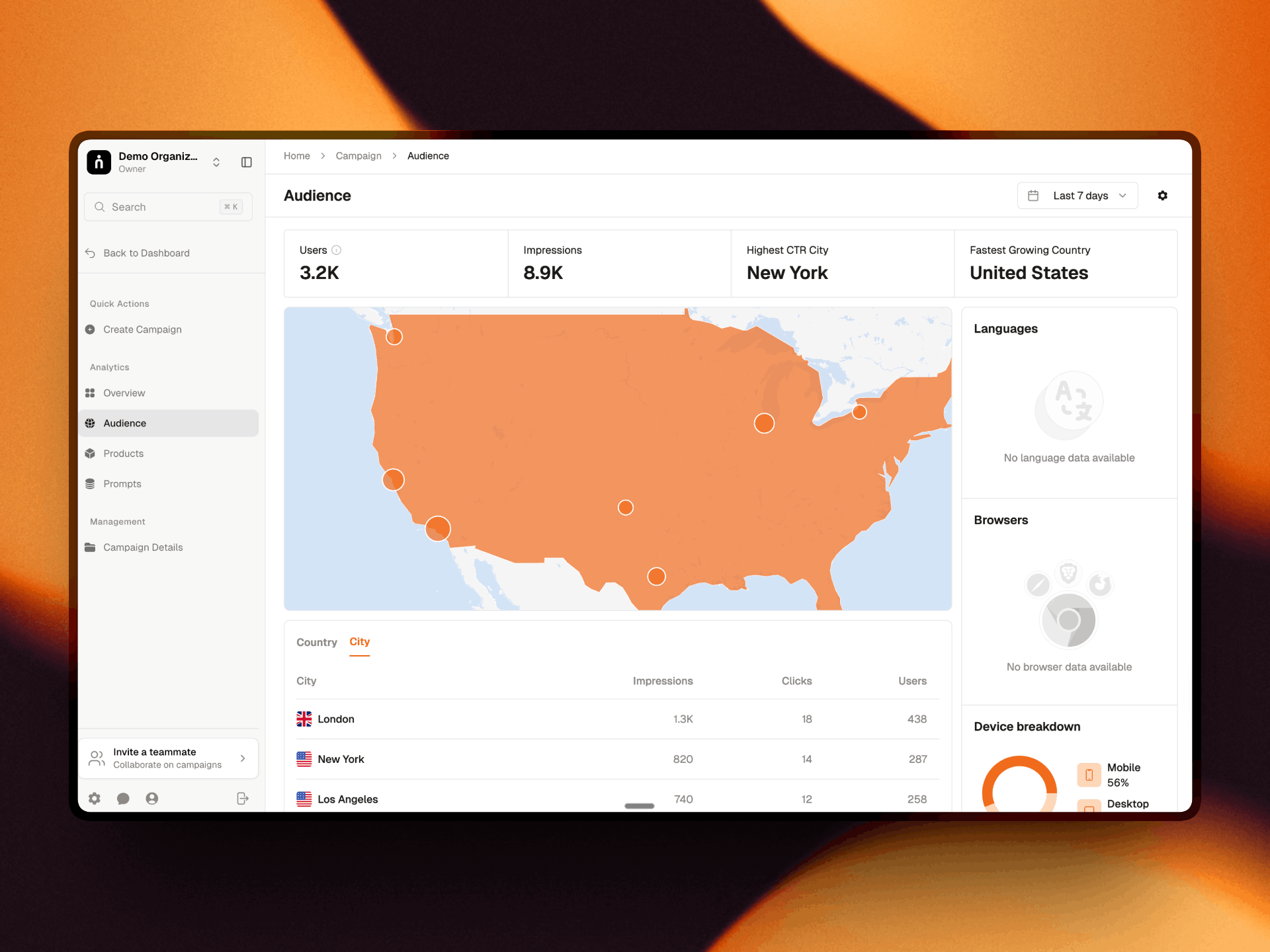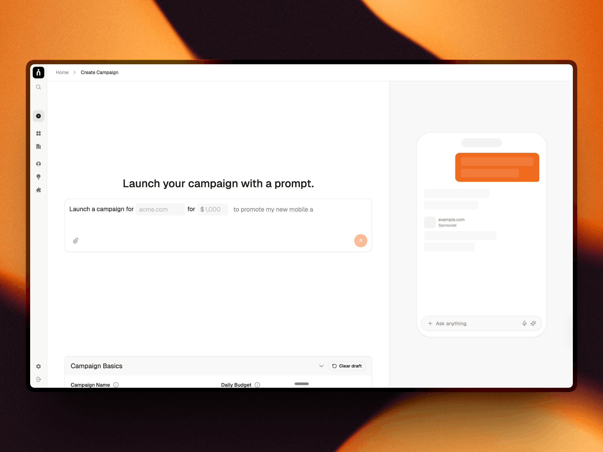 Thrad is an early-stage London AdTech startup building an AI-native advertising platform. I joined as the founding design engineer and took full ownership of the frontend over four months.